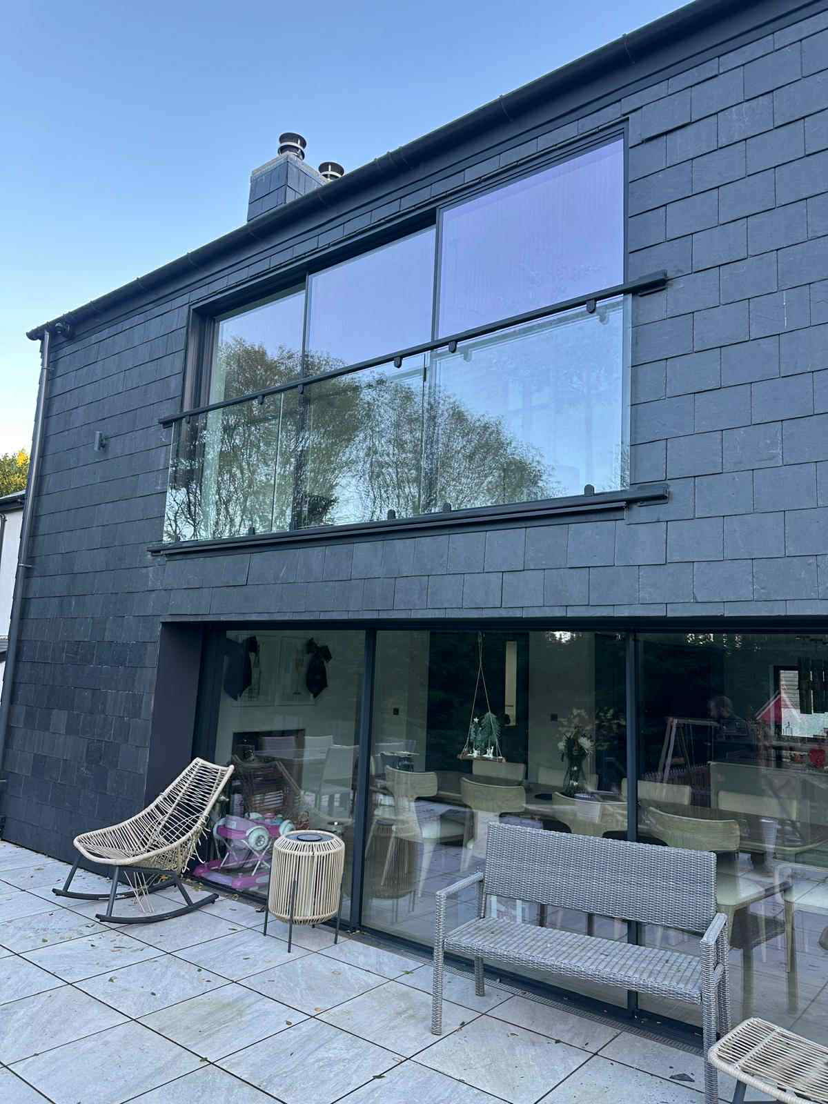 The finished Juliet balcony provides added safety without compromising light or aesthetics. The clean lines and glass finish create a contemporary look, while giving the homeowner peace of mind and a practical solution for upper-floor openings.